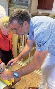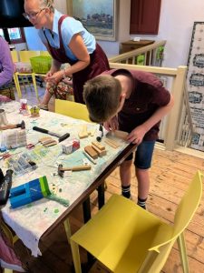 Onder leiding van Berber Sieperda werd er maandagochtend flink geklust door de kinderen en wethouder Henk de Boer hielp ook een handje mee, om een robot van schroothout te maken. In het kader van Simmer yn Súdwest zijn in de diverse musea uit onze gemeente allerlei toffe workshops georganiseerd. In it Tsiispakhûs dus een robot maken van schroothout, spijkers, lijm, acrylstiften e.d . Dus de fantasie kan zijn vrije gang gaan. Zo leren ze spelenderwijs over hergebruik, techniek en vormgeving. Uiteraard mochten ze hun eigen bouwsel mee naar huis nemen. We kunnen terug kijken op een leuke ochtend.